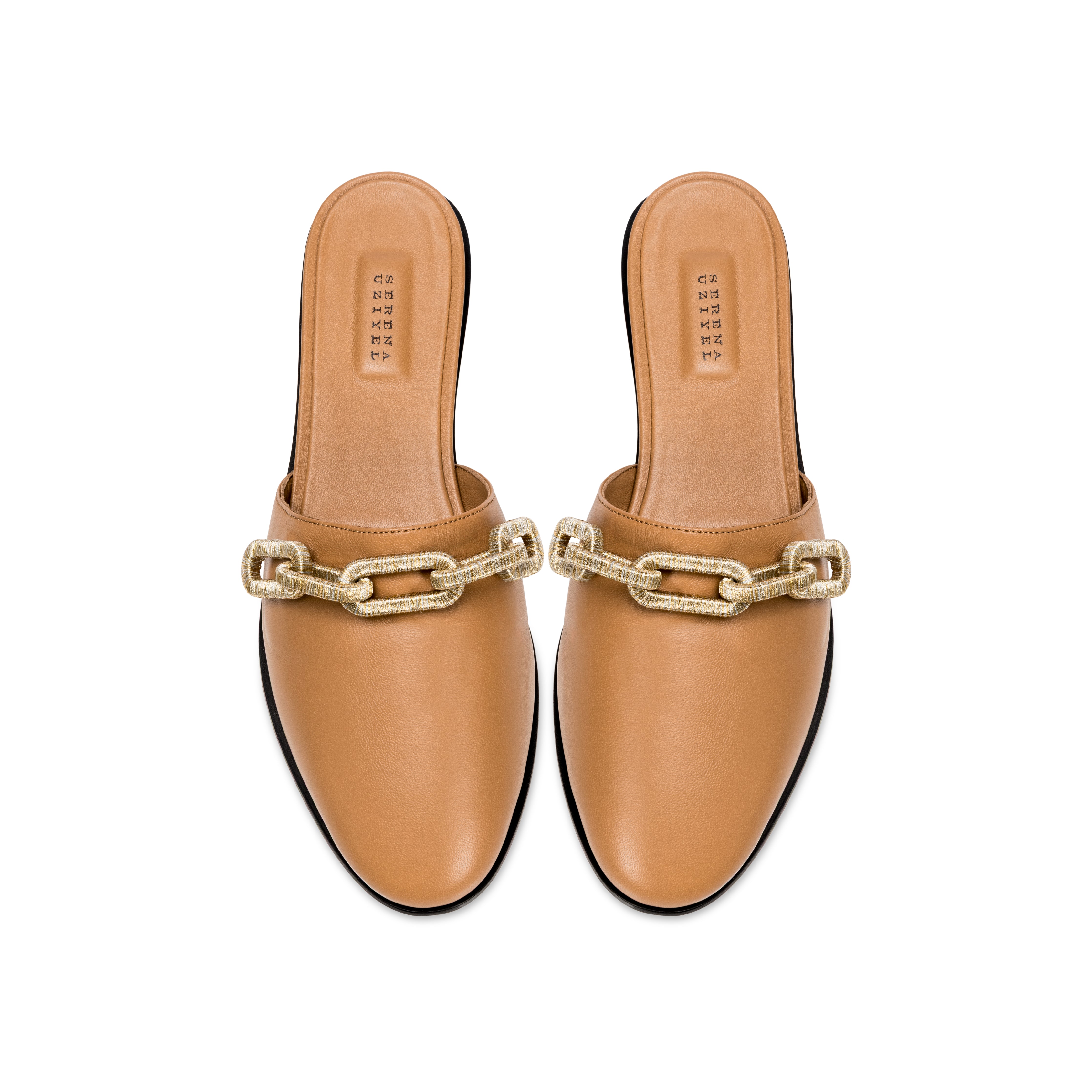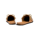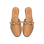 Meet the utterly feminine Catena sliperette, delicately crafted from luxurious latte colored leather and adorned with a breathtaking combination of gold silver chain. With a dainty fifteen millimeters uplift, these sliperettes offer a subtle boost while preserving a beautifully feminine silhouette. Slip into the captivating Catena sliperette and embrace the magnetic allure at every step.
