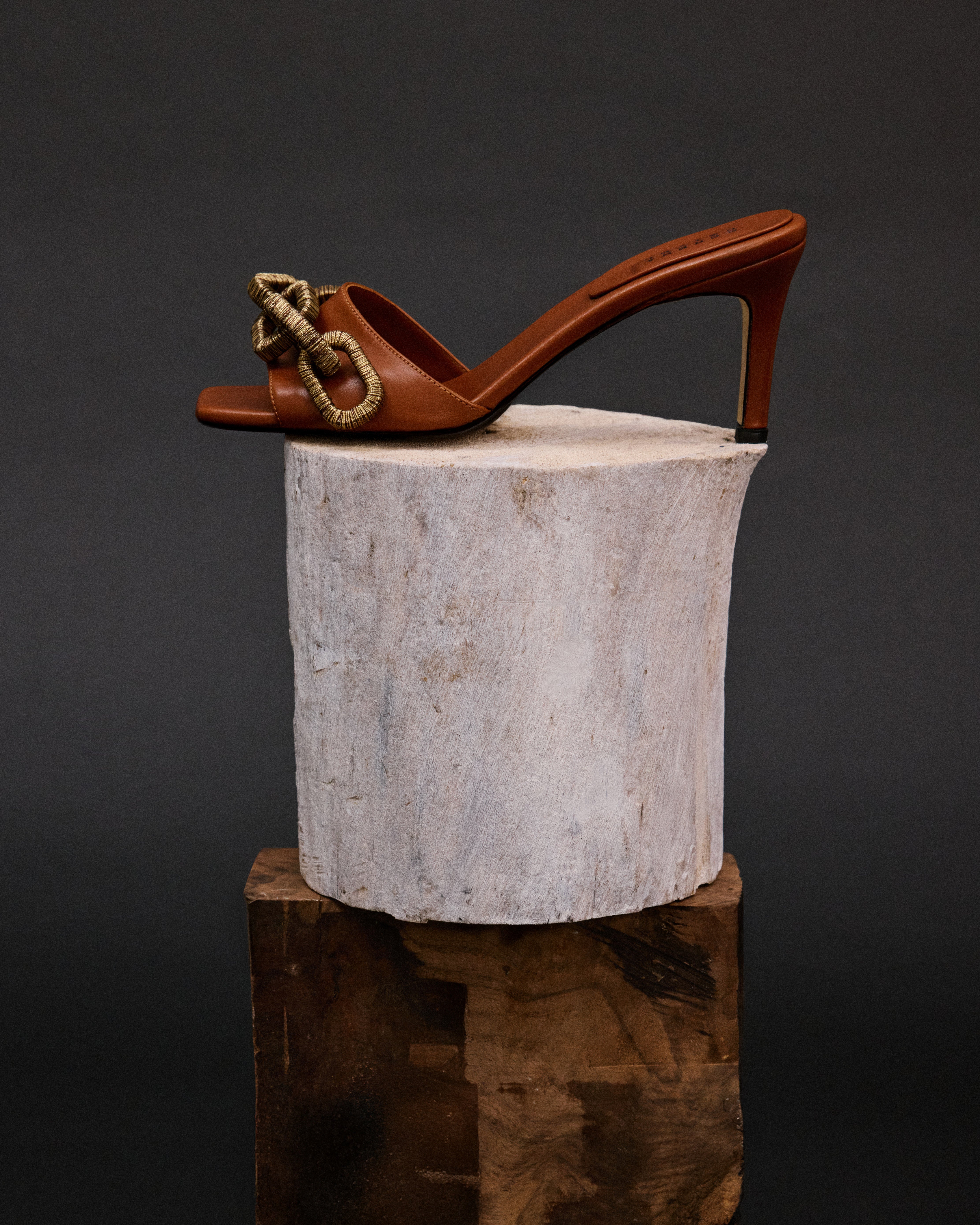 The Catena Sandal evokes a sense of nostalgia and timeless sophistication. Handcrafted in Italy from supple camel leather, this refined design is set on a 70mm heel, offering the perfect balance of poise and comfort. The front strap is adorned with intricate chain embroidery, where metallic threads are twisted and woven by hand to create a subtle yet striking shimmer. Elegant and versatile, the Catena Sandal brings understated luxury to every step, making it an essential piece for those who appreciate quiet glamour and enduring craftsmanship.