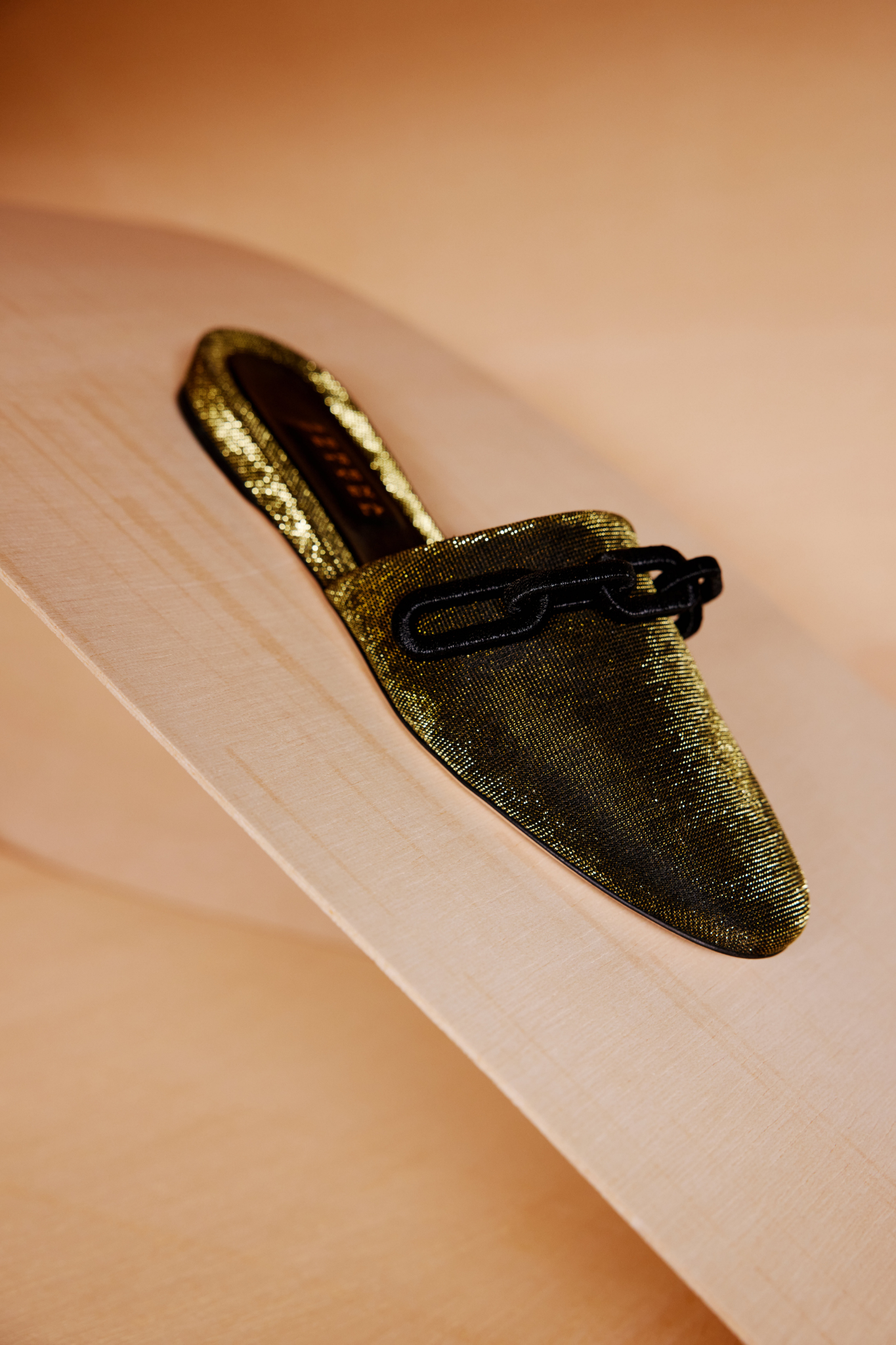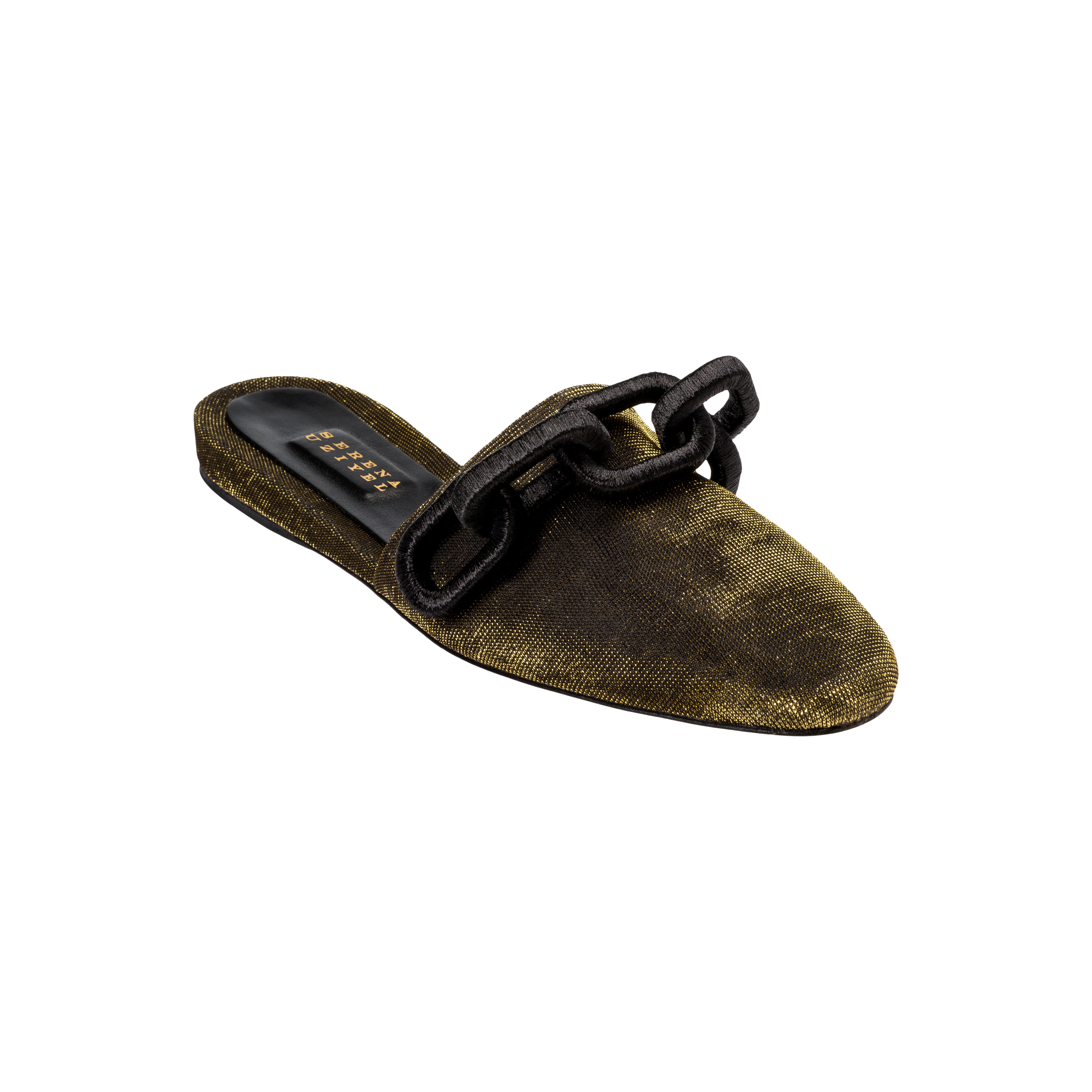 Meet the utterly feminine Catena sliperette, delicately crafted from sumptuous metallic glitter fabric and adorned with an exquisite black chain. With a dainty ten millimeters uplift, the sliperettes offer a subtle boost while preserving a beautifully feminine silhouette. Slip into the captivating Catena sliperette and embrace the magnetic allure at every step.
