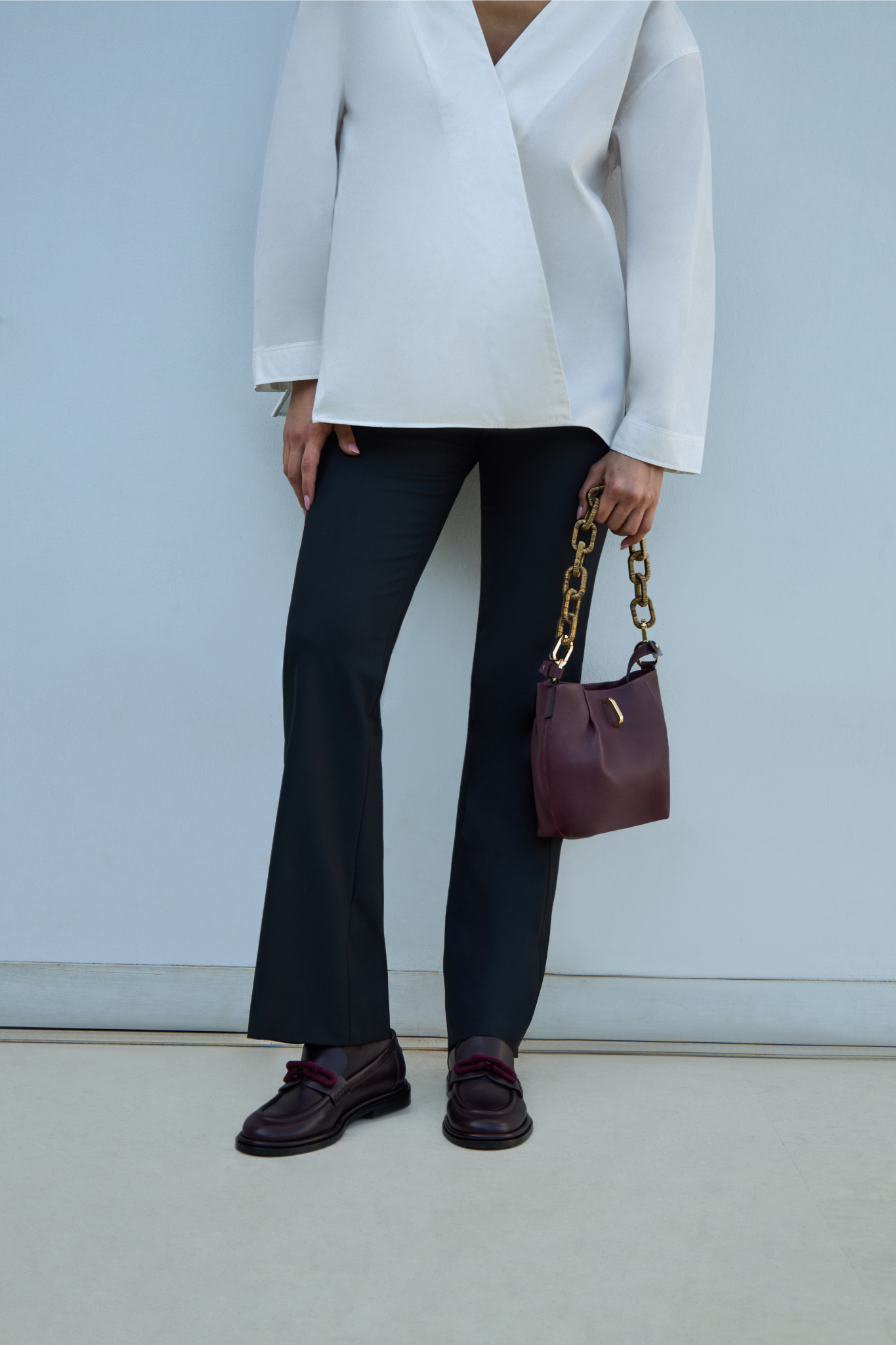 The Catena Flat Moccasin has been expertly handcrafted in Italy from supple burgundy leather with luxuriously lined in a sumptuous suede chains. Made with comfort and style in mind, the moccasin features an updated edition of the signature Serena Uziyel Catena chain link adornment, eye-catching and elegant in wrapped suede. Slip on easily under jeans and a silk blouse for a day around town.
