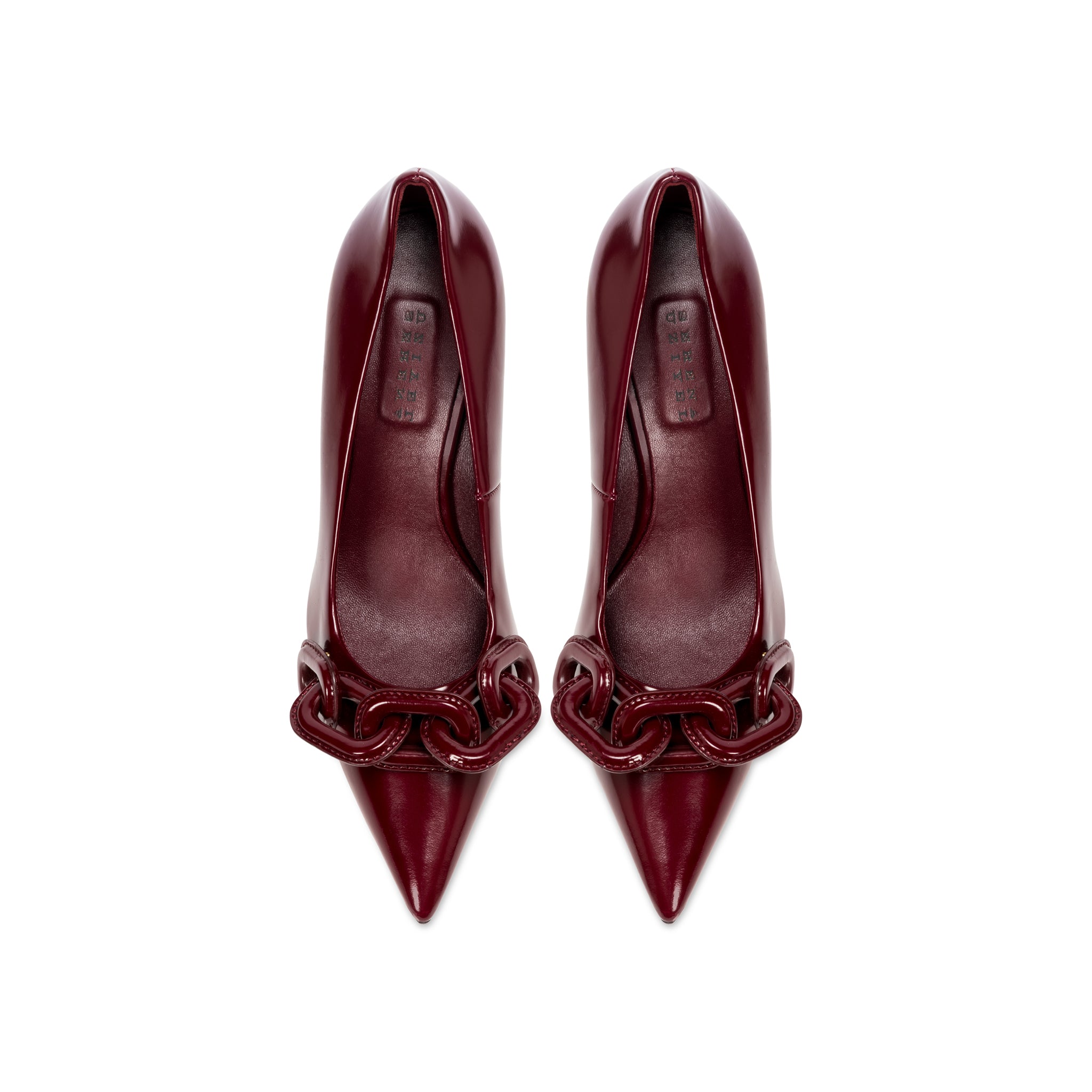 Handcrafted in Italy from patent burgundy leather with luxuriously lined in patent leather chains, the Catena Pumps feature a sleek pointed toe set on a slim 70mm stiletto heel. A result of Impeccable craftsmanship and timeless design, the pumps are detailed with a brand new iteration of Serena Uziyel’s signature Catena chain links, this time delicately wrapped in threads of sumptuous suede. Classic and easy to style, the pumps are ideal to pair with anything from tailoring to midi dresses.
