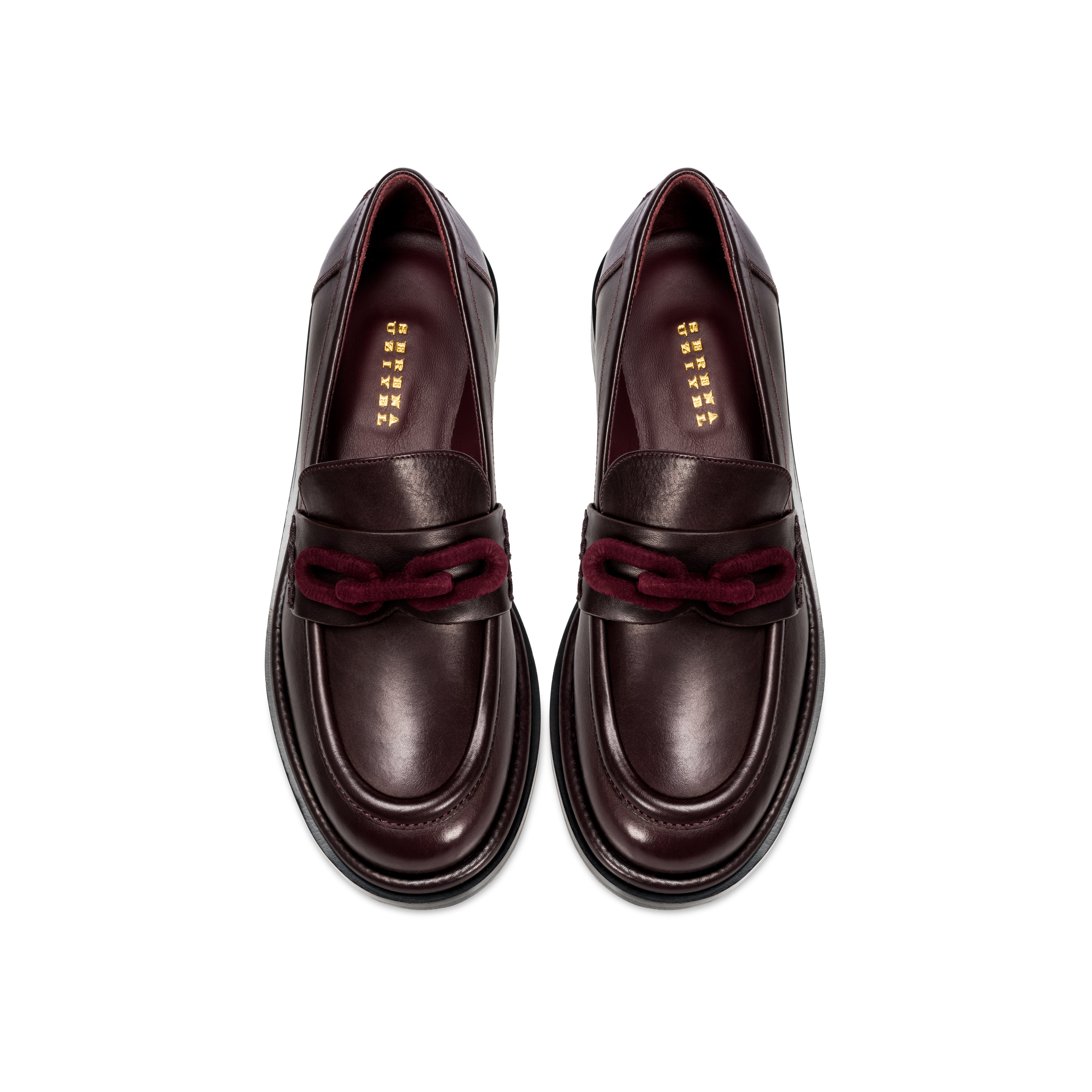 The Catena Flat Moccasin has been expertly handcrafted in Italy from supple burgundy leather with luxuriously lined in a sumptuous suede chains. Made with comfort and style in mind, the moccasin features an updated edition of the signature Serena Uziyel Catena chain link adornment, eye-catching and elegant in wrapped suede. Slip on easily under jeans and a silk blouse for a day around town.