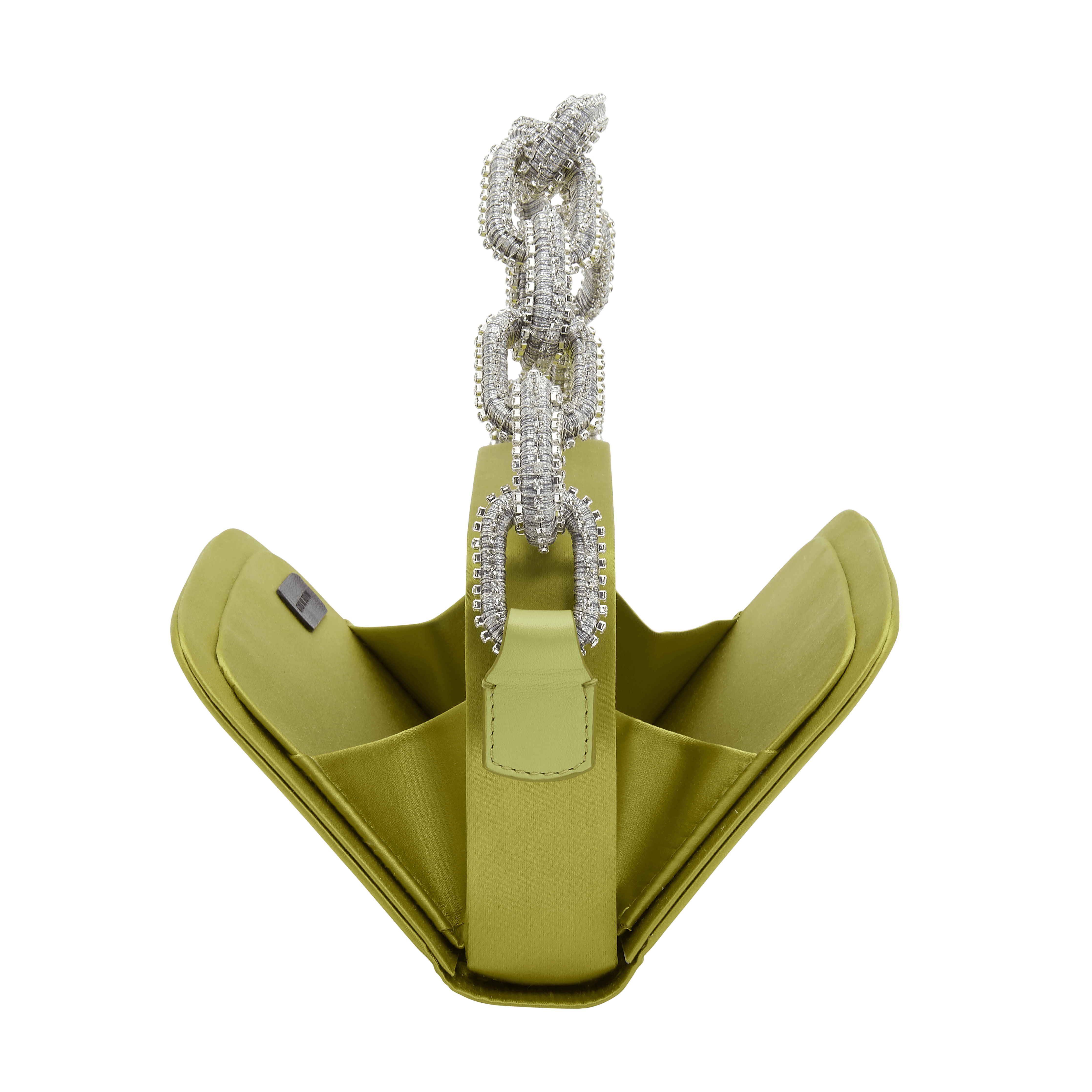 Expertly handcrafted in luxurious pure silk satin, the Catena Two-Sided Bag brings glamour and sophistication to your wardrobe. The fine cotton glam threads articulate an embroidered chain-link handle at the top of the bag. Catena Two-Sided Bag is unique due to its two-sided openings as each is independent from the other with separate compartments for added convenience. The elegance and ease of the Catena will enhance attire suitable for both day & night.