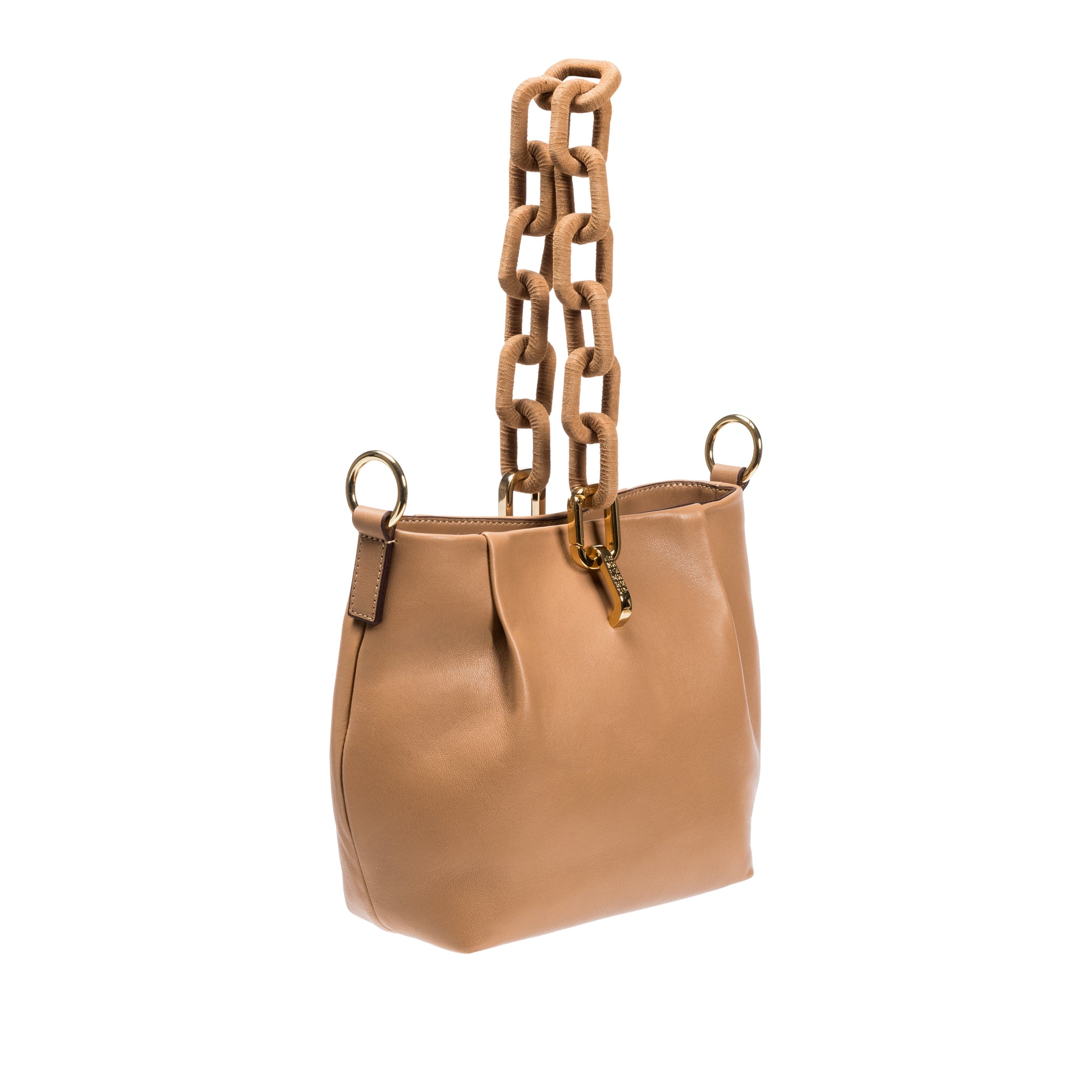 Catena Shoulder Pouch Bag is a petite and elegant shoulder pouch, inspired by soft, sculptural silhouettes that embody refined sophistication. Crafted in Italy by skilled artisans from supple leather or soft suede, it features two detachable straps—one short, one longer—for versatile styling, as well as a Catena chain link strap that drapes like jewelry when not in use.
