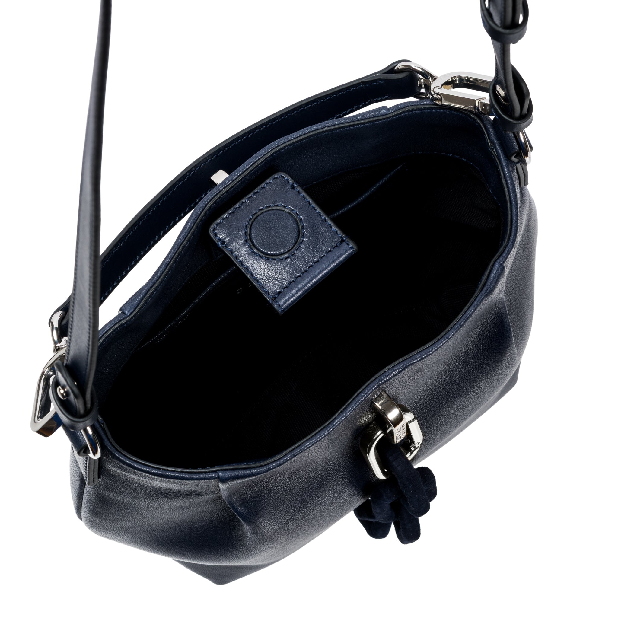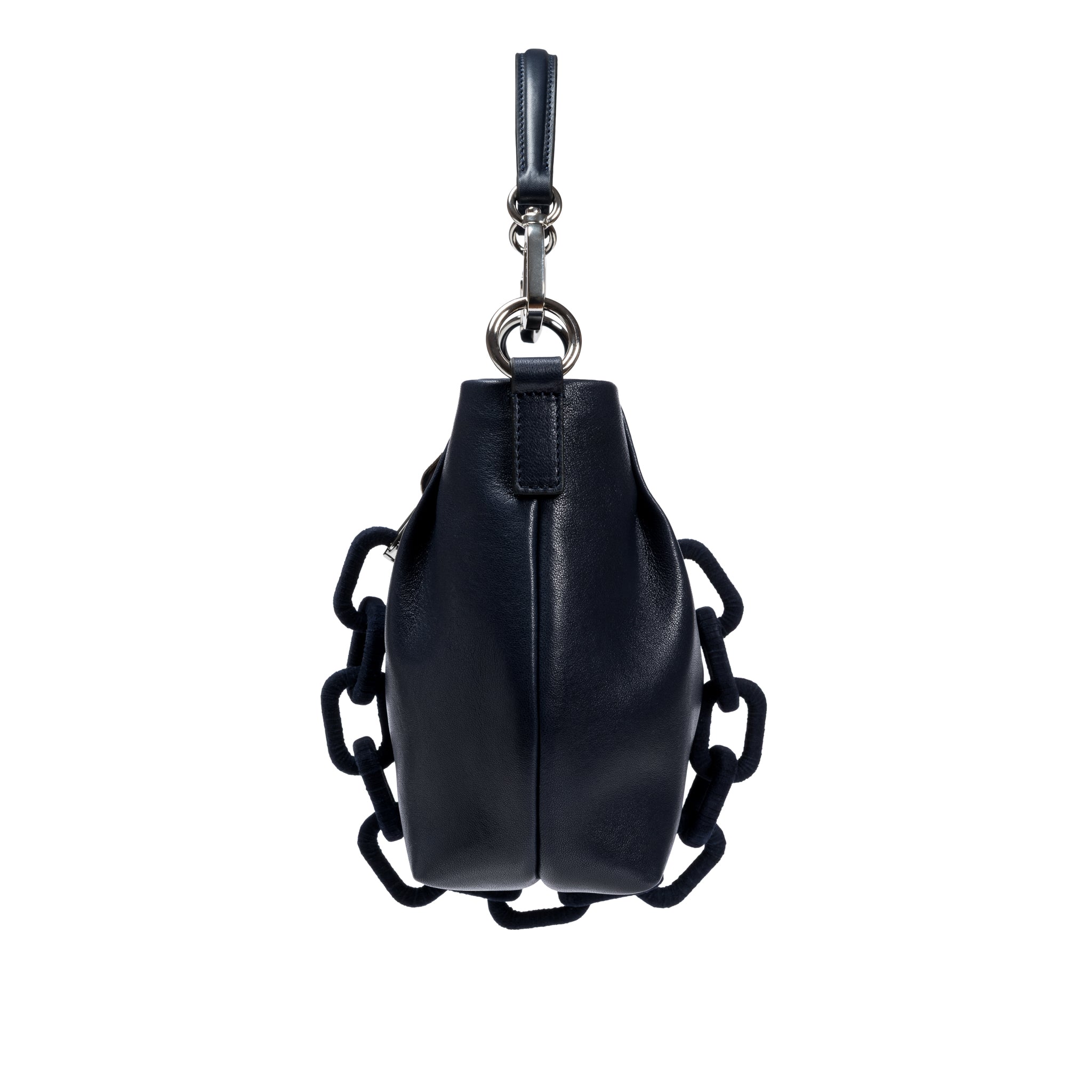 Catena Shoulder Pouch Bag is a petite and elegant shoulder pouch, inspired by soft, sculptural silhouettes that embody refined sophistication. Crafted in Italy by skilled artisans from supple leather or soft suede, it features two detachable straps—one short, one longer—for versatile styling, as well as a Catena chain link strap that drapes like jewelry when not in use.