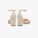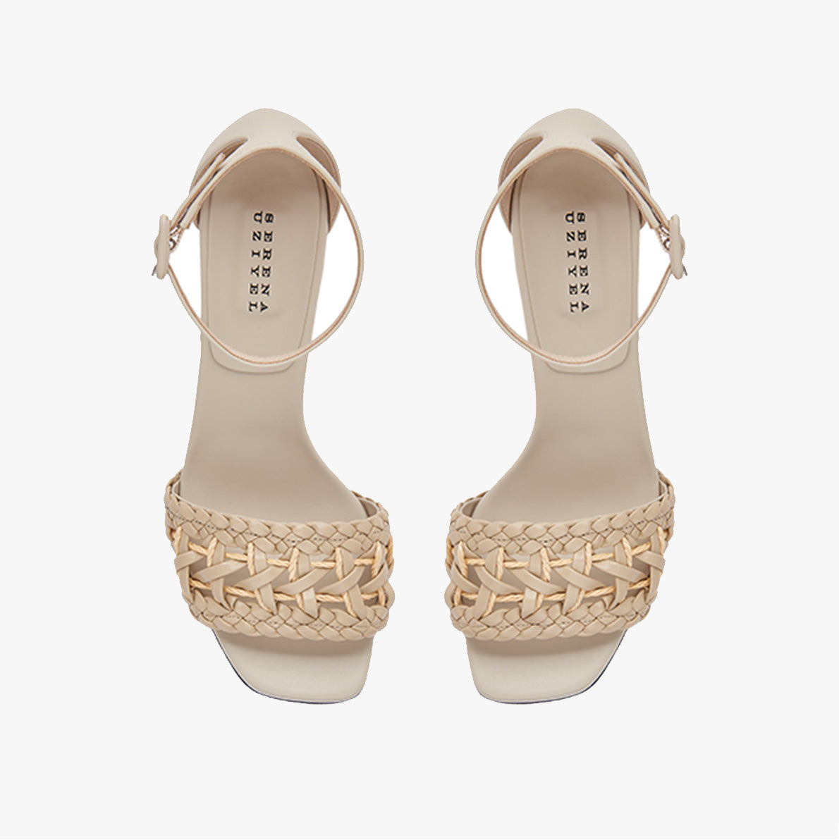 Sophisticated and paired down at once, the Almeria Mid Heel Block Ankle Sandals are open toe ankle strap heels carefully made in Italy from a beautifully supple nude leather. Featuring a open toe for a contemporary look and a towering fifty millimeters block heel for extra comfort, the focal point of the shoe is the exquisitely handcrafted strap. A signature Serena Uziyel use of intricately contrasted materials, the nude leather braiding of the Almeria sandal’s strap is delicately interwoven with raffia embroidery. Slip them on with everything from a T-shirt and jeans to an evening dress for an undeniably chic look.