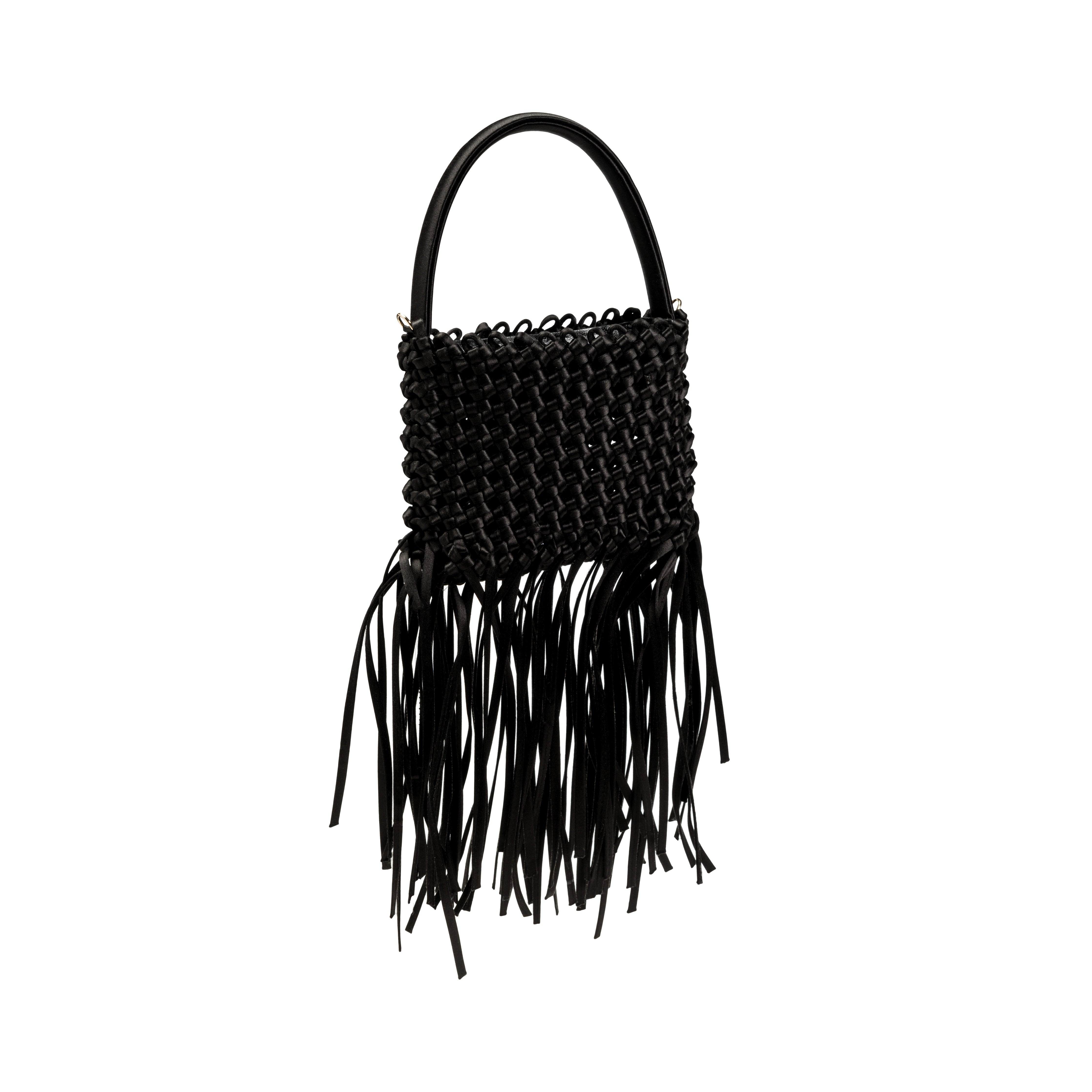 The perfect texture. The Aurnia Mini Tote bag features leather and silk braiding that come together to create a fringe finishing. This tote’s modern sophistication can be used for day and night.