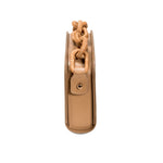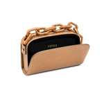 Expertly handcrafted in a luxurious soft latte leather, the Catena Two-Sided Bag brings glamour and sophistication to your wardrobe. The natural raffia threads articulate an embroidered chain-link handle at the top of the bag. Catena Two-Sided Bag is unique due to its two-sided openings as each is independent from the other with separate compartments for added convenience. The elegance and ease of the Catena will enhance attire suitable for both day & night.