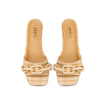 Crafted from pure natural raffia, the Catena Flat Sandals features raffia threads that are bound together to create rectangular chain shaped embroidery for contrast. The flat structure and the tactility of the beautiful leather will comfort your steps with delicacy.