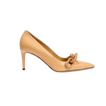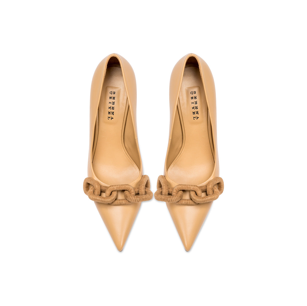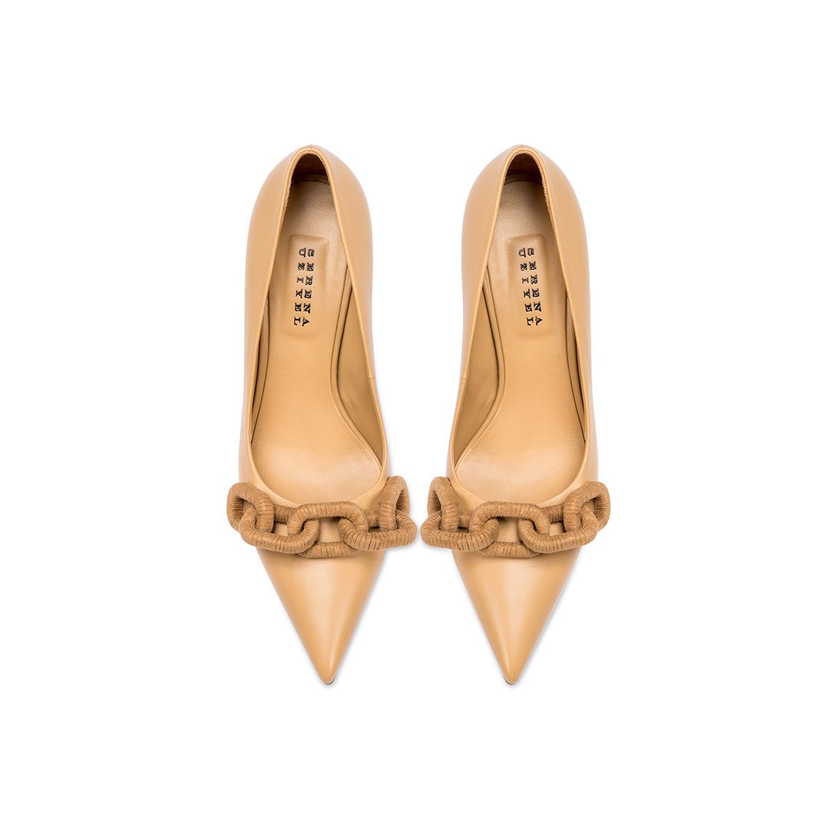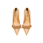 Handcrafted in Italy from pat leather with luxuriously lined in patent leather chains, the Catena Pumps feature a sleek pointed toe set on a slim 70mm stiletto heel. A result of Impeccable craftsmanship and timeless design, the pumps are detailed with a brand new iteration of Serena Uziyel’s signature Catena chain links, this time delicately wrapped in threads of sumptuous suede. Classic and easy to style, the pumps are ideal to pair with anything from tailoring to midi dresses.