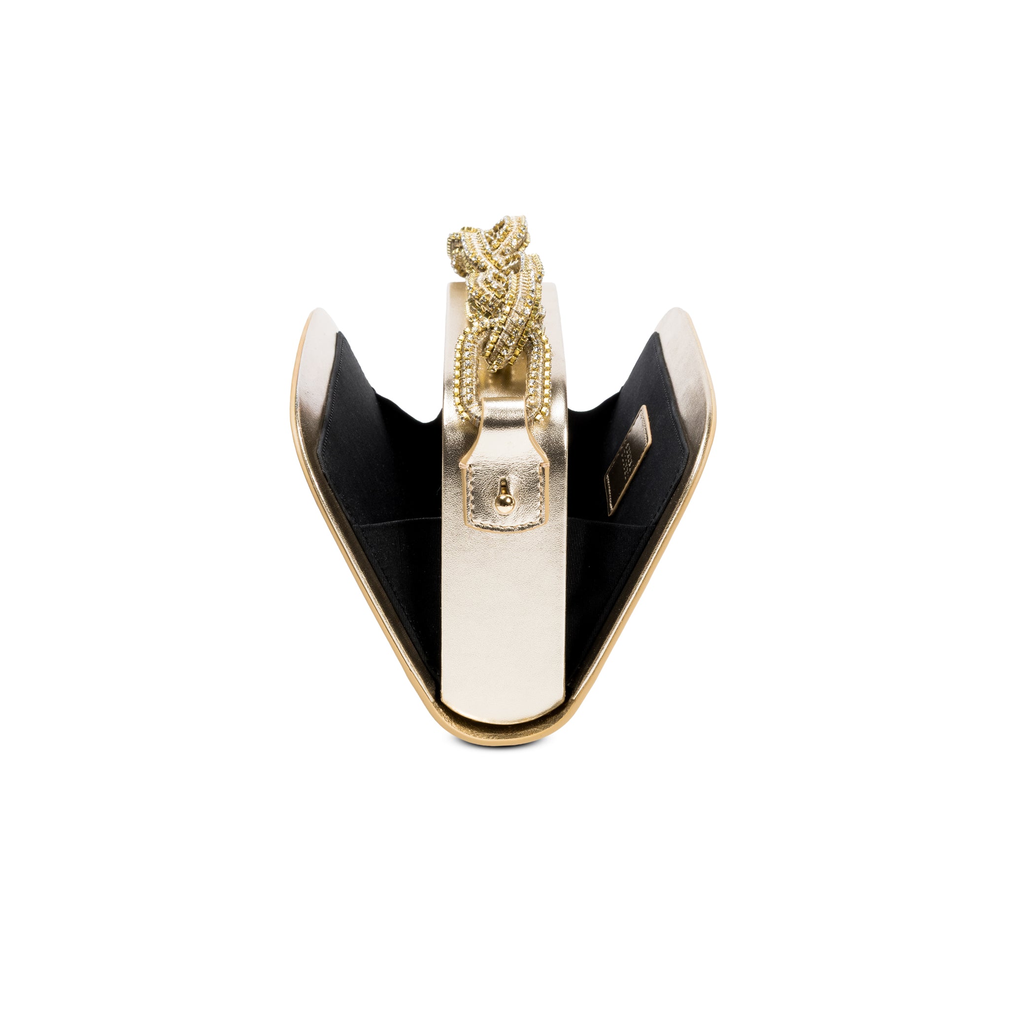 Expertly handcrafted in luxurious metallic leather, the Catena Two-Sided Bag brings glamour and sophistication to your wardrobe. The fine metallic glam threads articulate an embroidered chain-link handle at the top of the bag. Catena Two-Sided Bag is unique due to its two-sided openings as each is independent from the other with separate compartments for added convenience. The elegance and ease of the Catena will enhance attire suitable for both day & night.