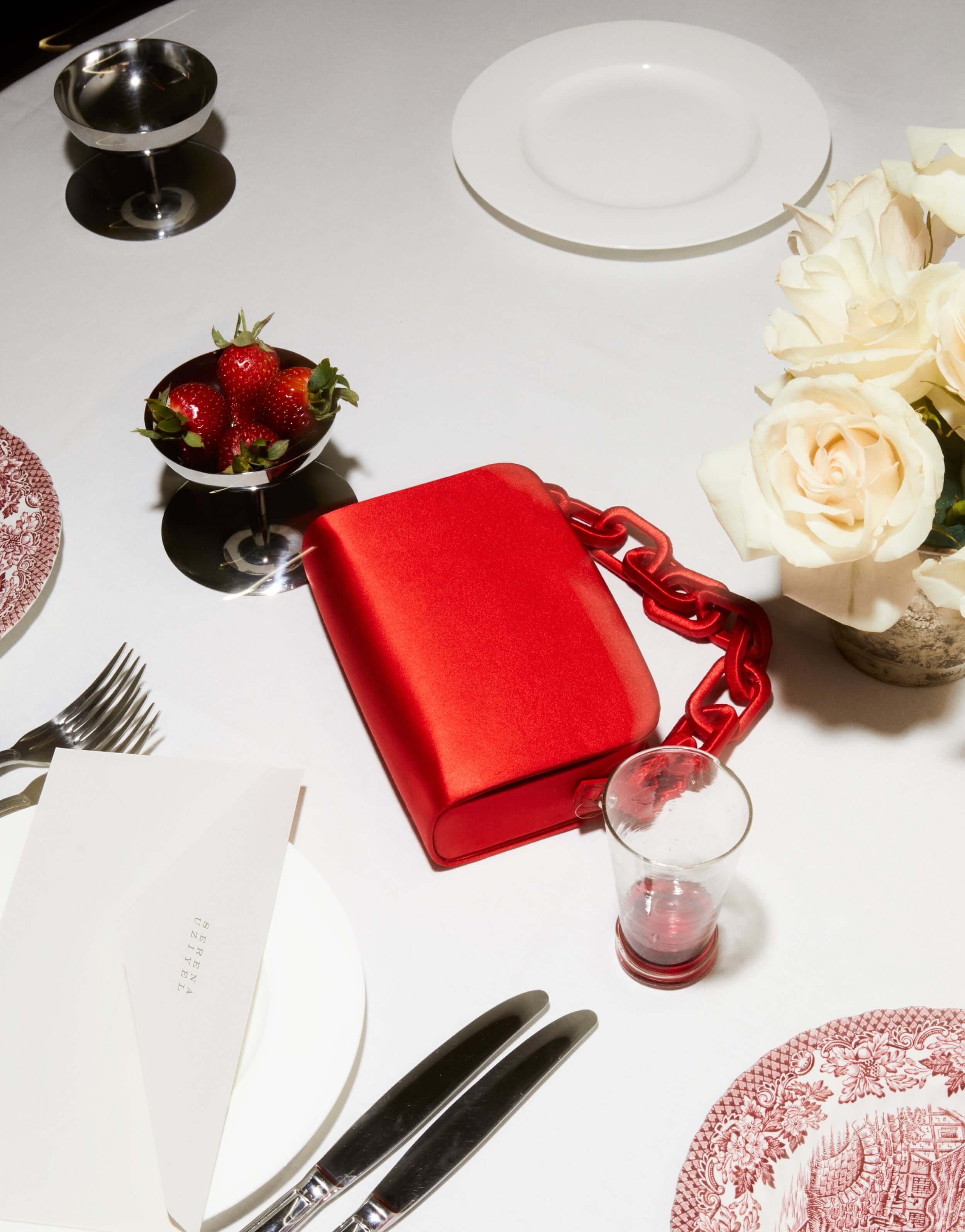 Expertly handcrafted in a luxurious pure silk satin, the Catena Two-Sided Bag brings glamour and sophistication to your wardrobe. The fine cotton threads articulate an embroidered chain-link handle at the top of the bag. Catena Two-Sided Bag is unique due to its two-sided openings as each is independent from the other with separate compartments for added convenience. The elegance and ease of the Catena will enhance attire suitable for both day & night.