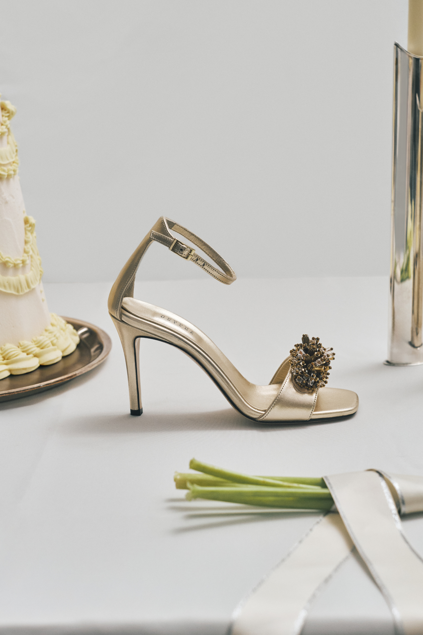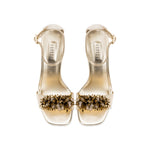 Created for evenings that call for quiet presence, this 90mm ankle sandal is crafted in metallic sahara leather, finished with a slender stiletto heel and delicate ankle strap.