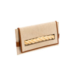 Our Thory natural envelope clutch is sleek and refined, designed to fit into your modern lifestyle with ease and sophistication. The natural canvas and gorgeous camello leather trim exude a mood of safari getaway with a stunning blend of neutral shades drawing inspiration from the desert. The twisted raffia closure and mirrored inside add thoughtful details.